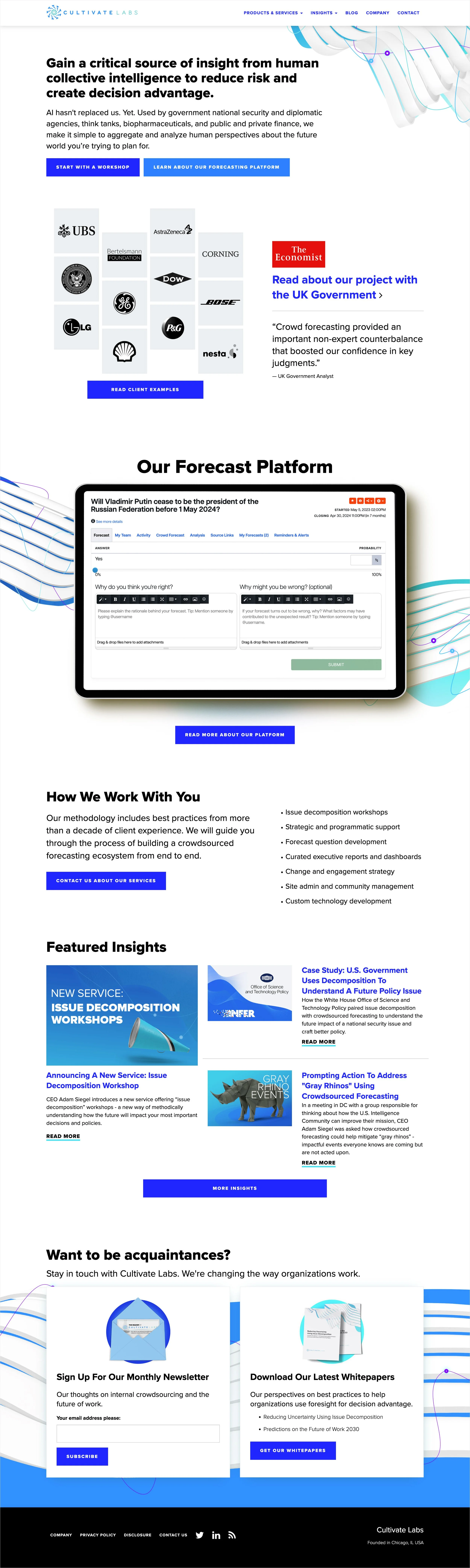 Creative direction, design, and front-end development for Cultivate Labs branding, website creation, and social media.